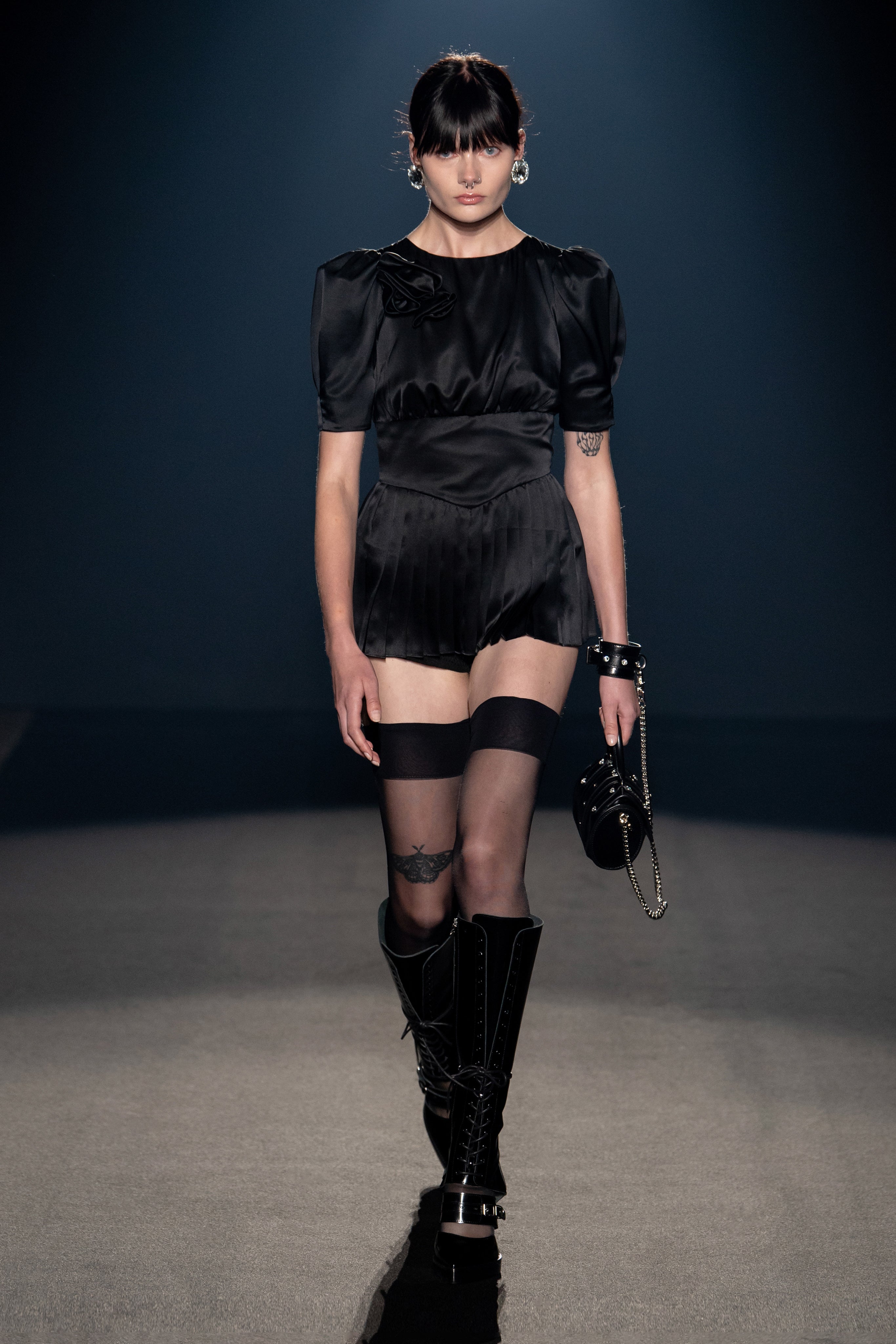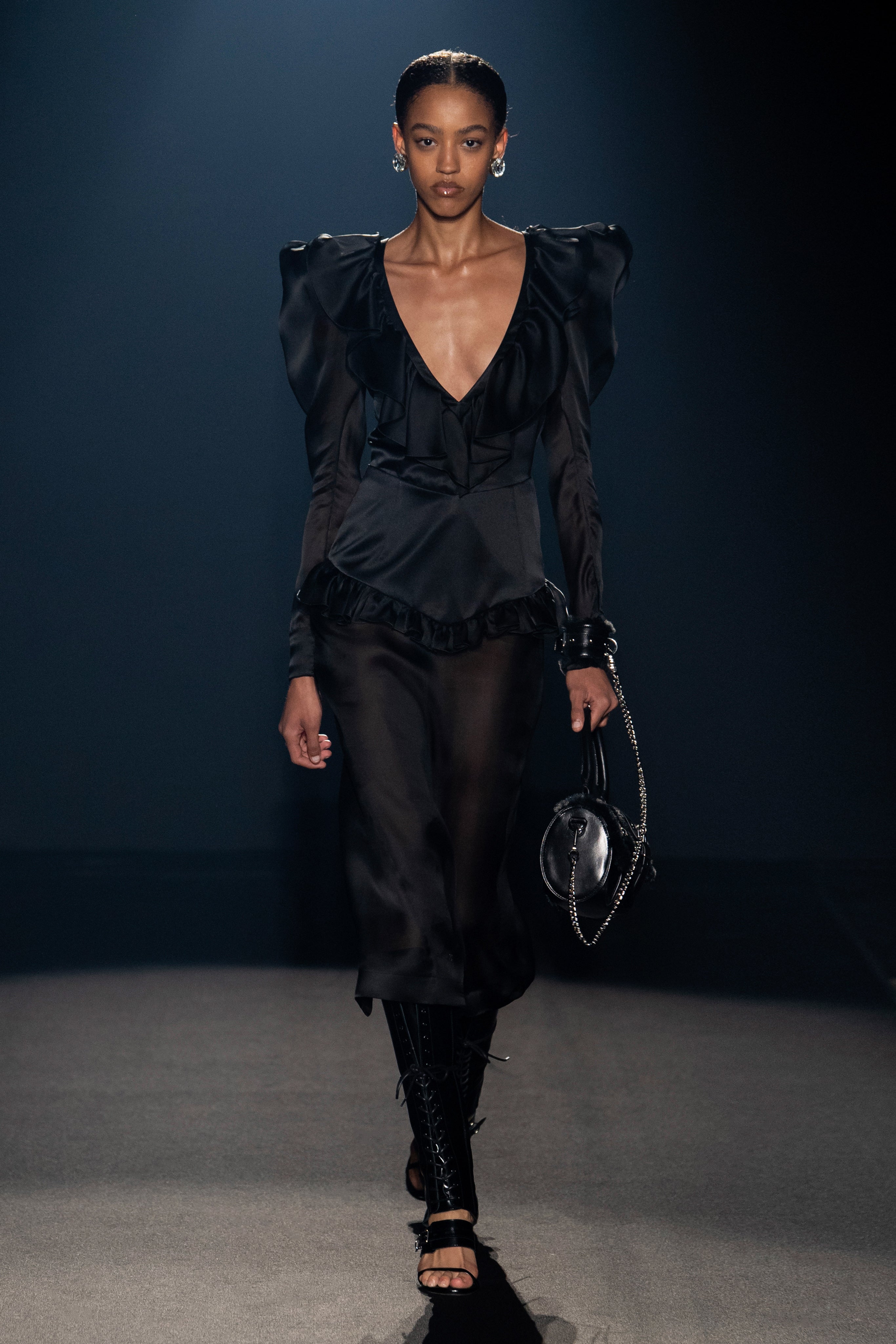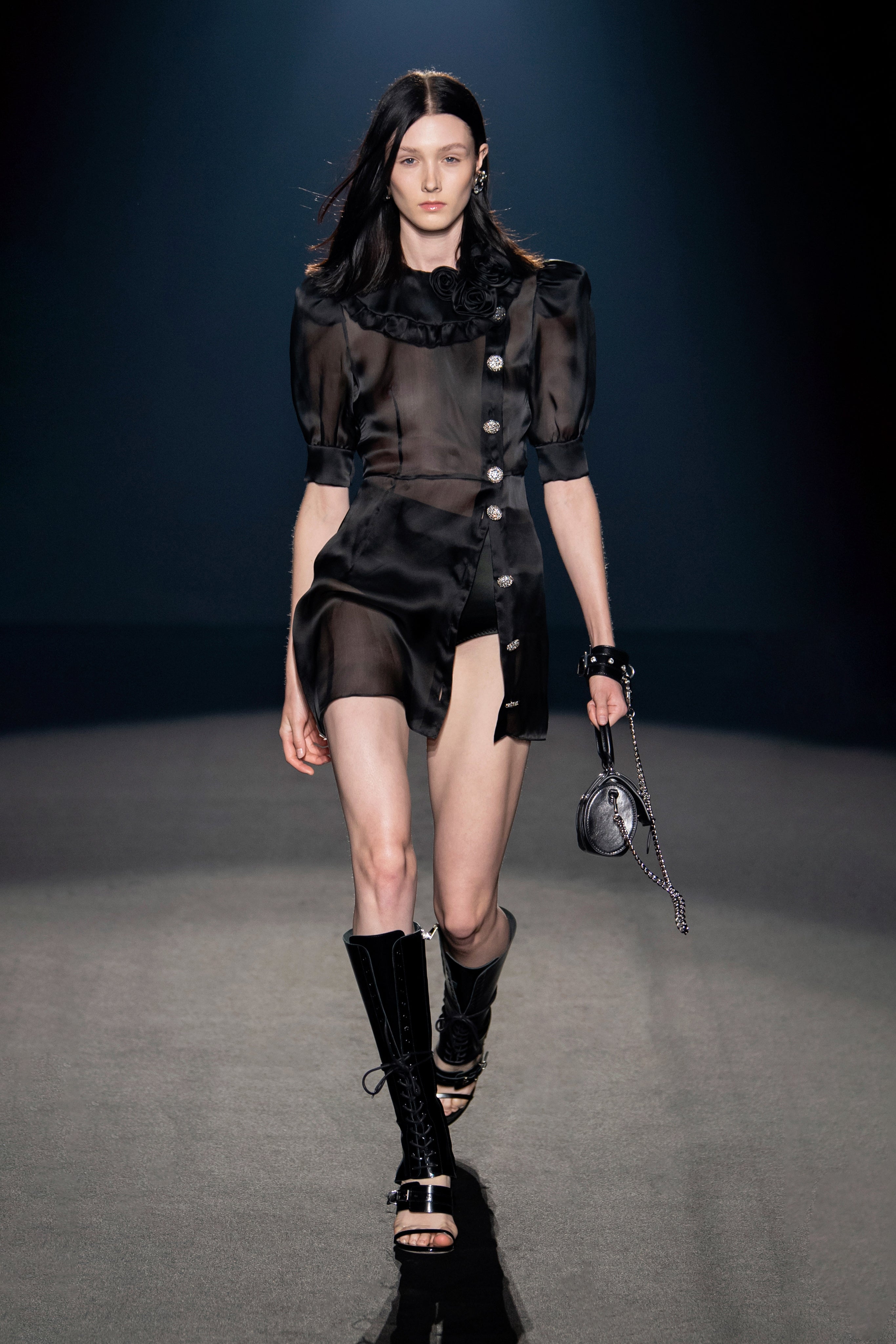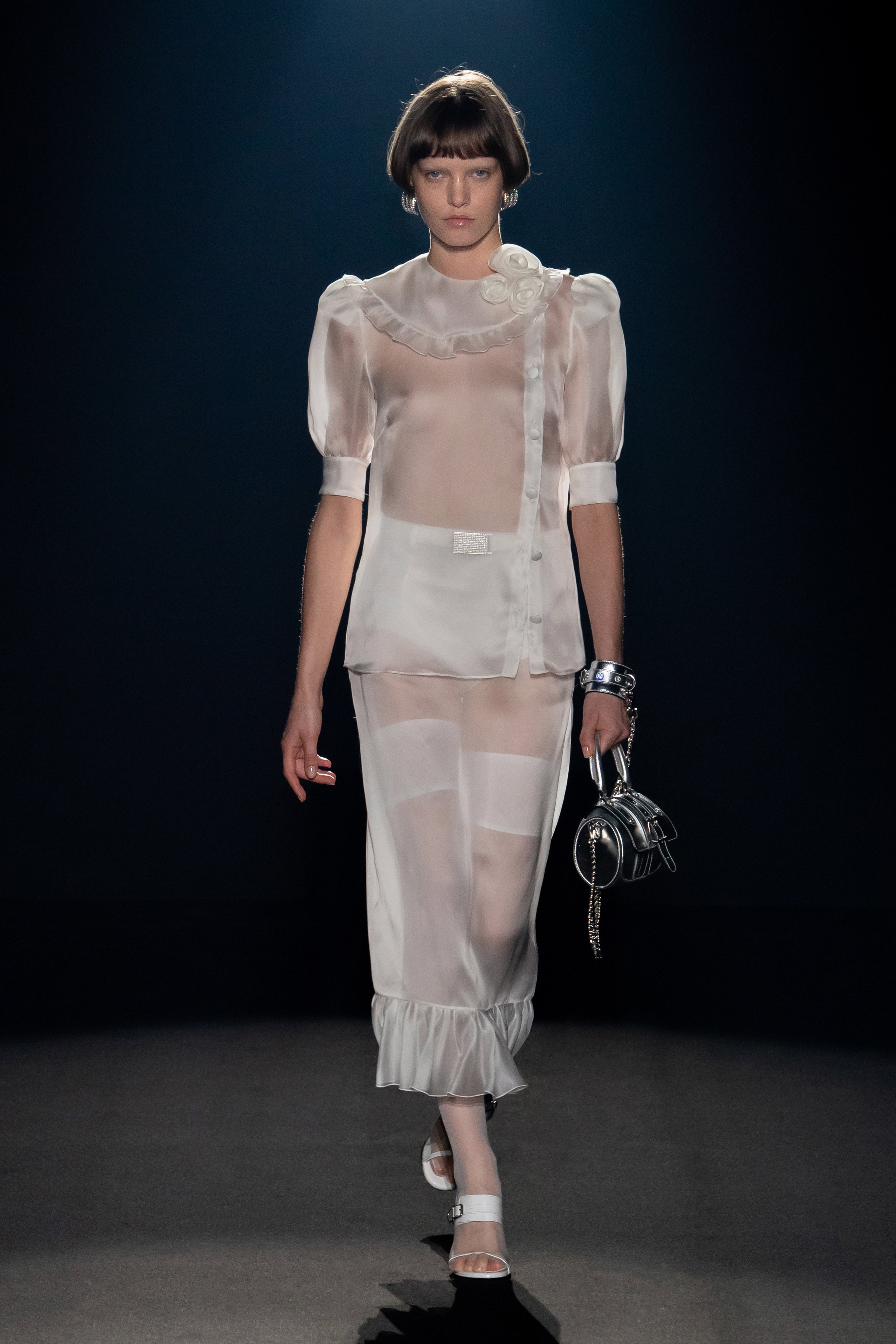Welcome to our holy and profane universe, ethereal with a punk bag and strong in transparent or- ganza, quiet when covered by metallics and stormy when dressed in soft billowy silks, delicate and aggressive as a silver rose.
