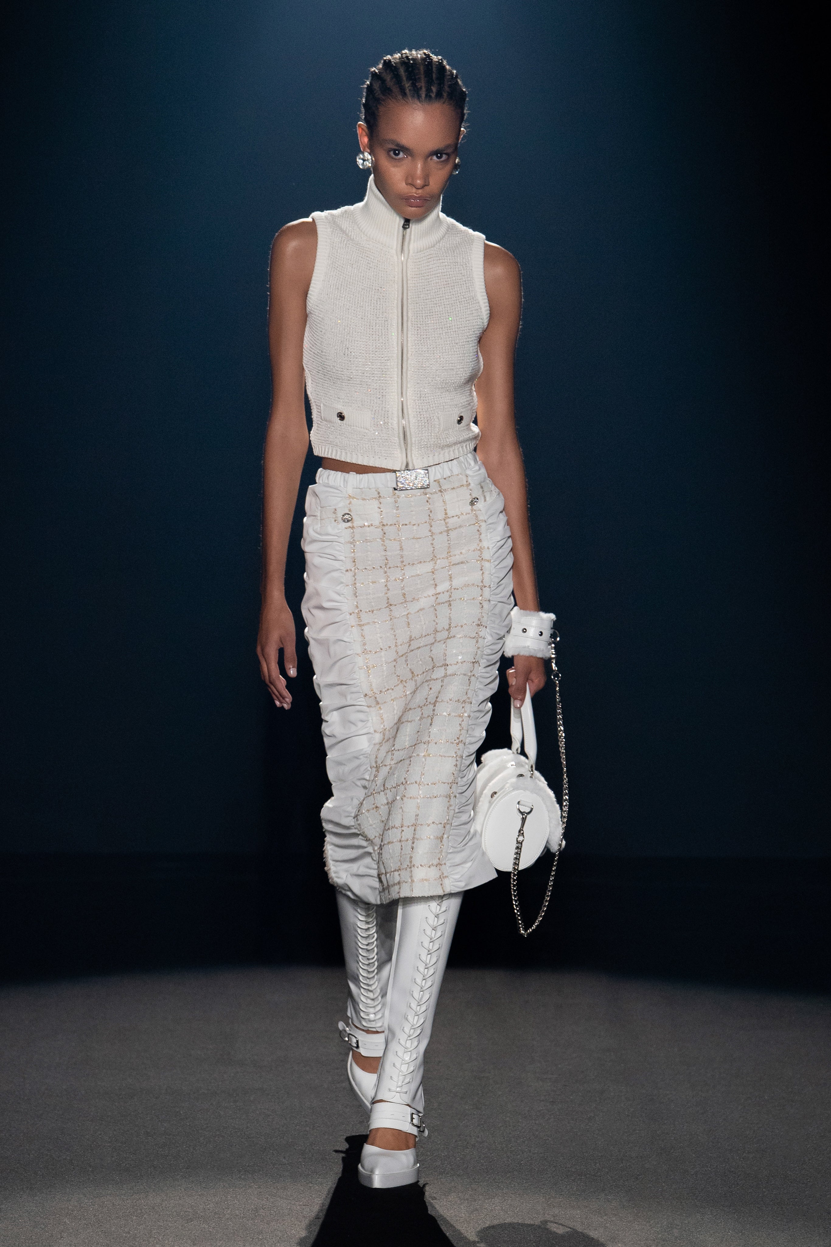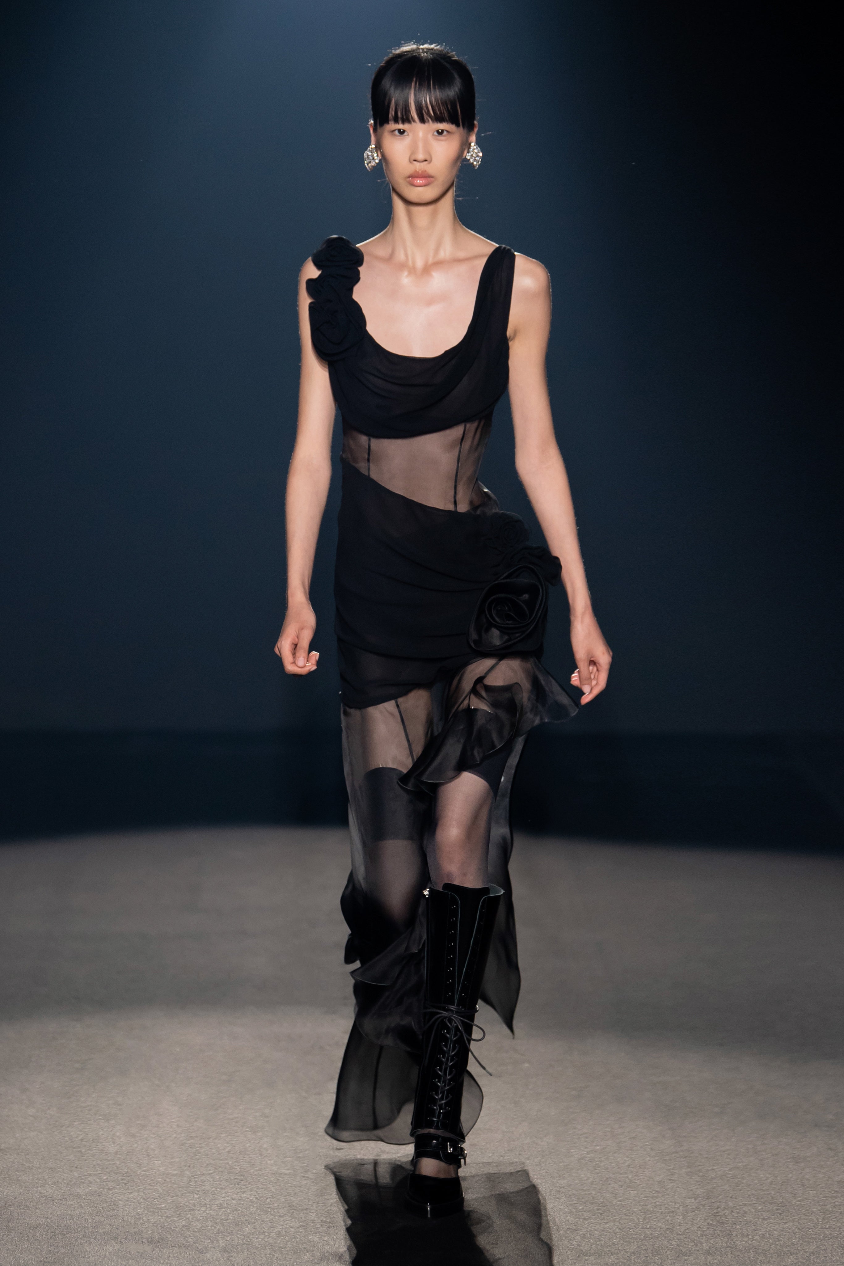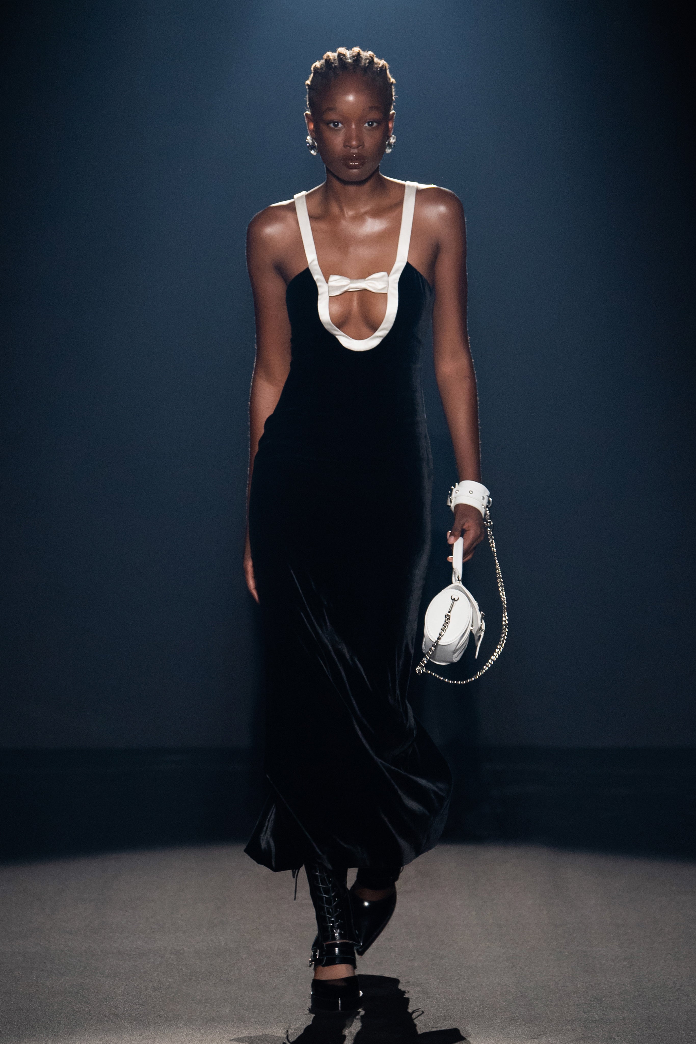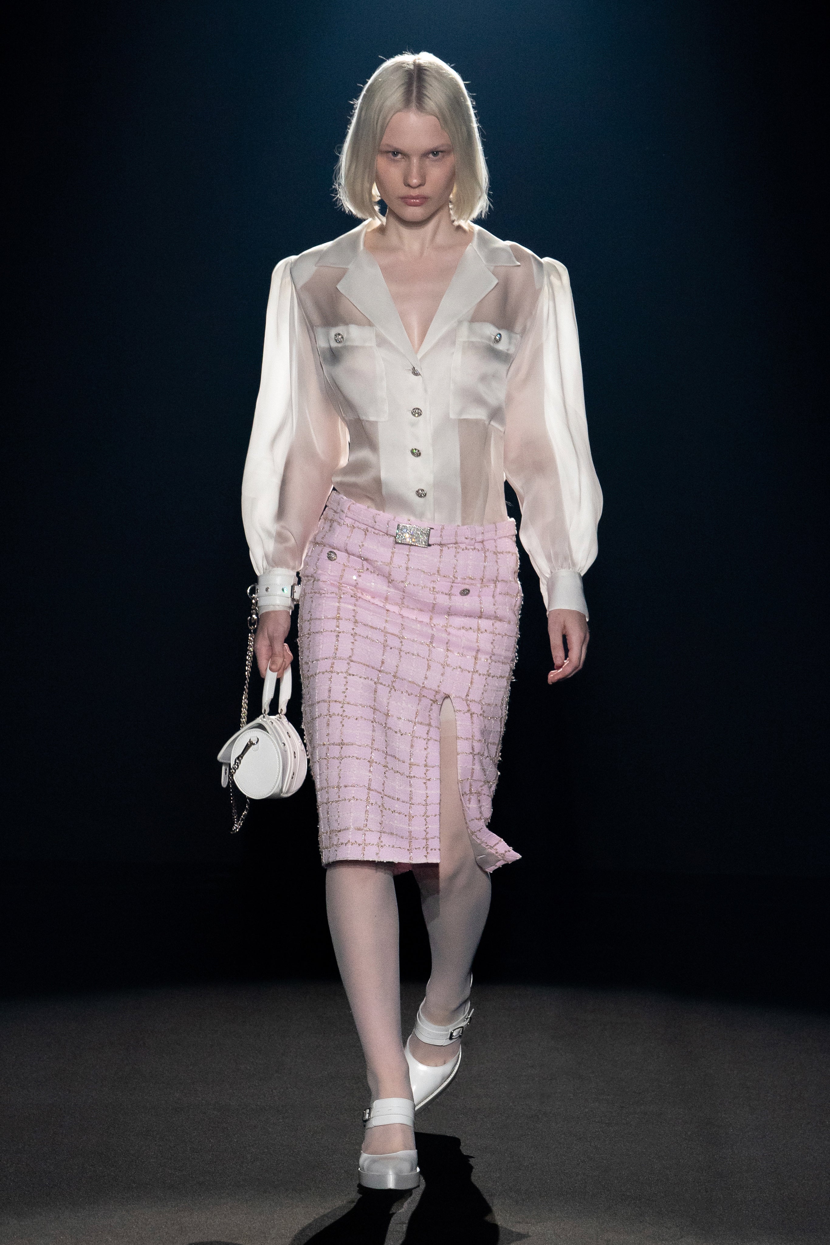Welcome to our holy and profane universe, ethereal with a punk bag and strong in transparent or- ganza, quiet when covered by metallics and stormy when dressed in soft billowy silks, delicate and aggressive as a silver rose.