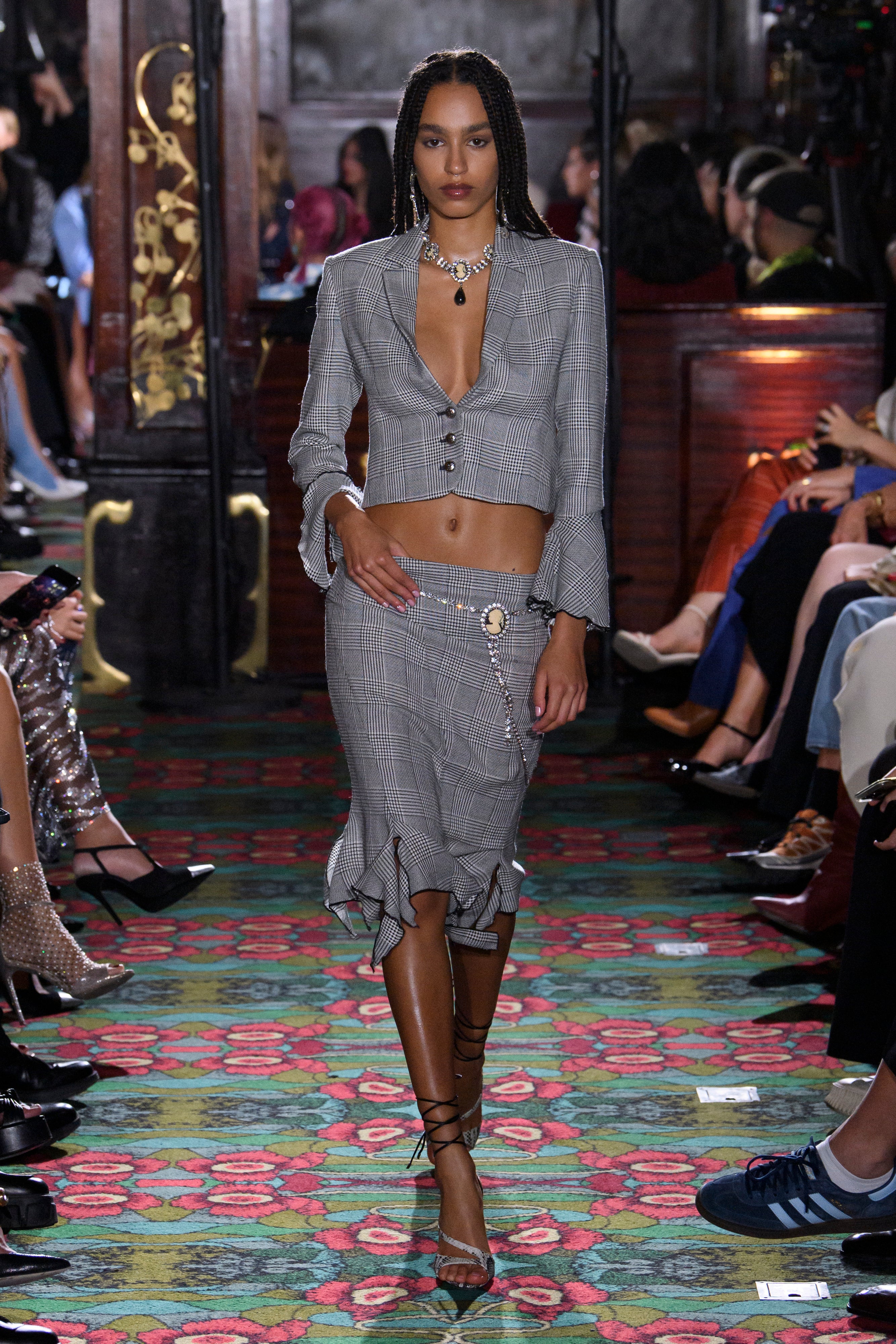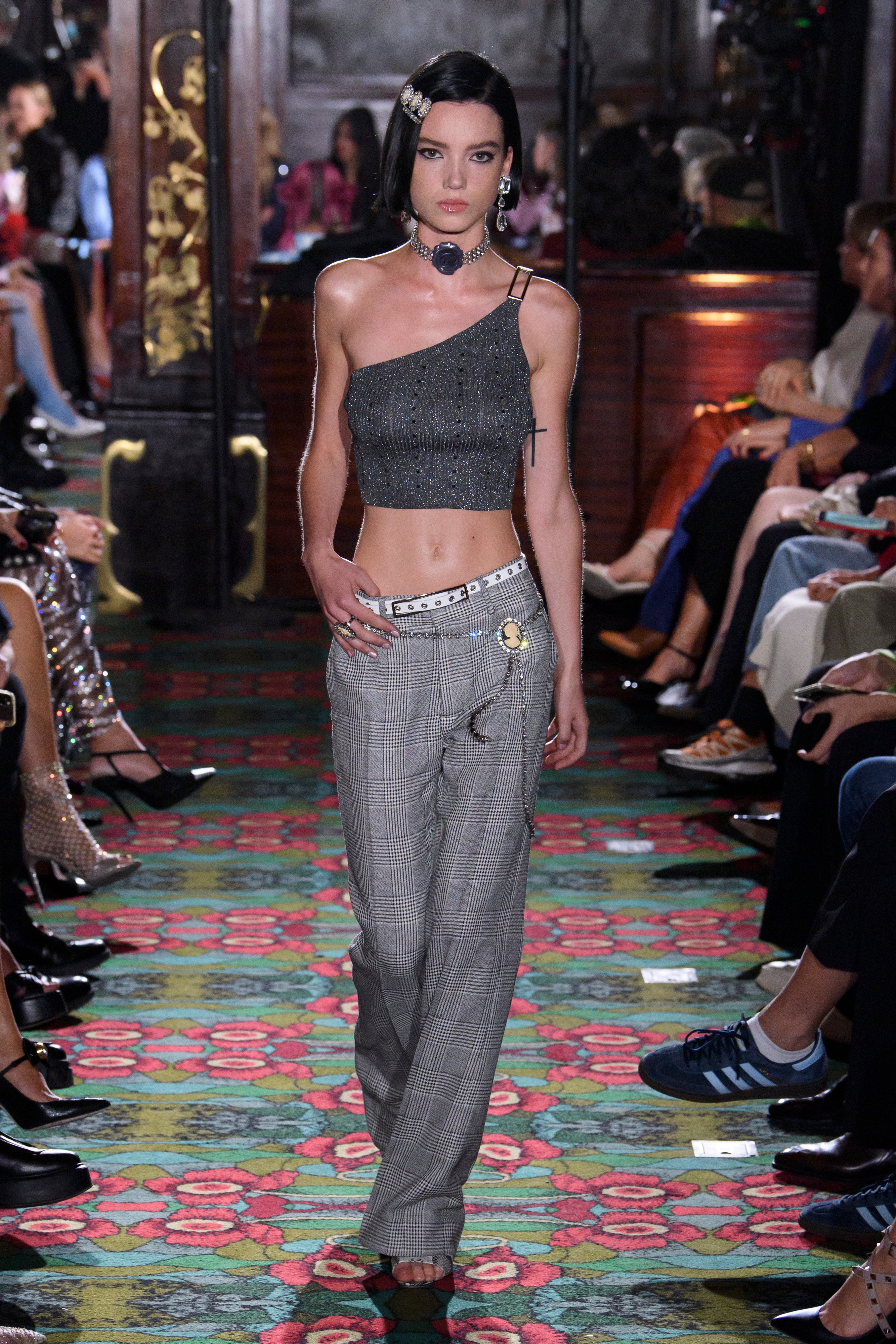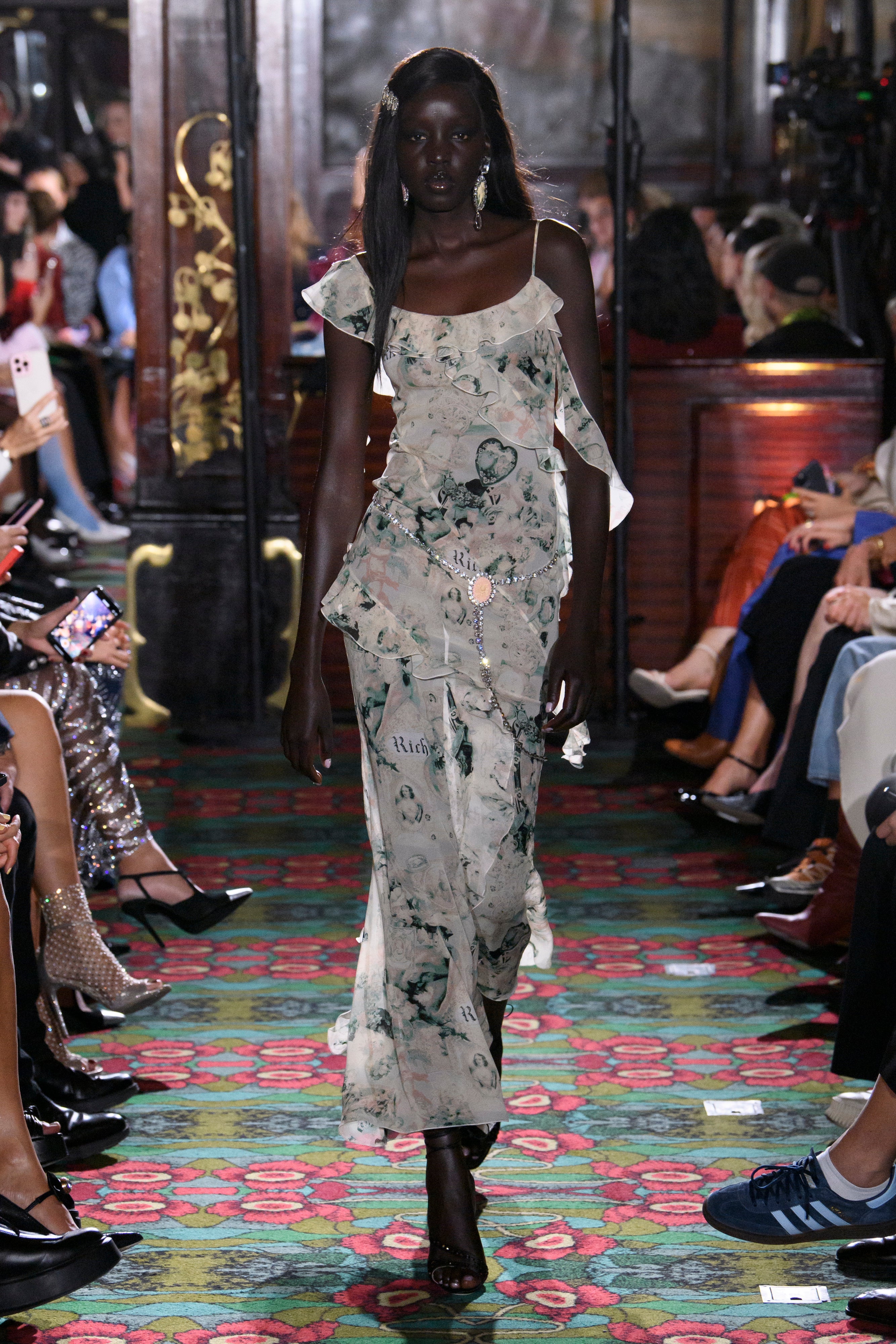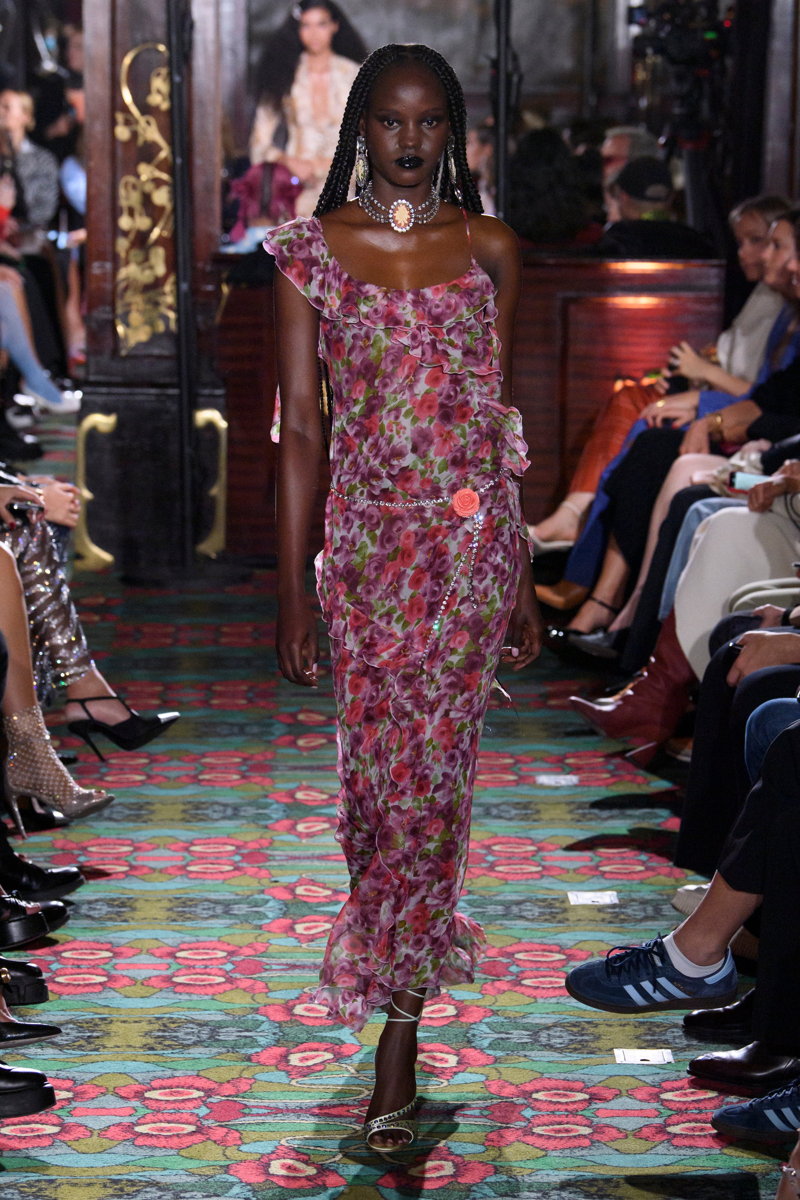 The instant she leaves the city lights behind, tight in a floral printed satin dress, someone opens the door for her. Just a sign in the air with her hand, covered by tulle and crystals. Everybody looks to her lips, lit red, like fresh roses or hot fires, made of seduction. She continues to walk, pouting her lips, in her low-rise silk flares and chiffon cropped top, leaving diamonds as footprints.