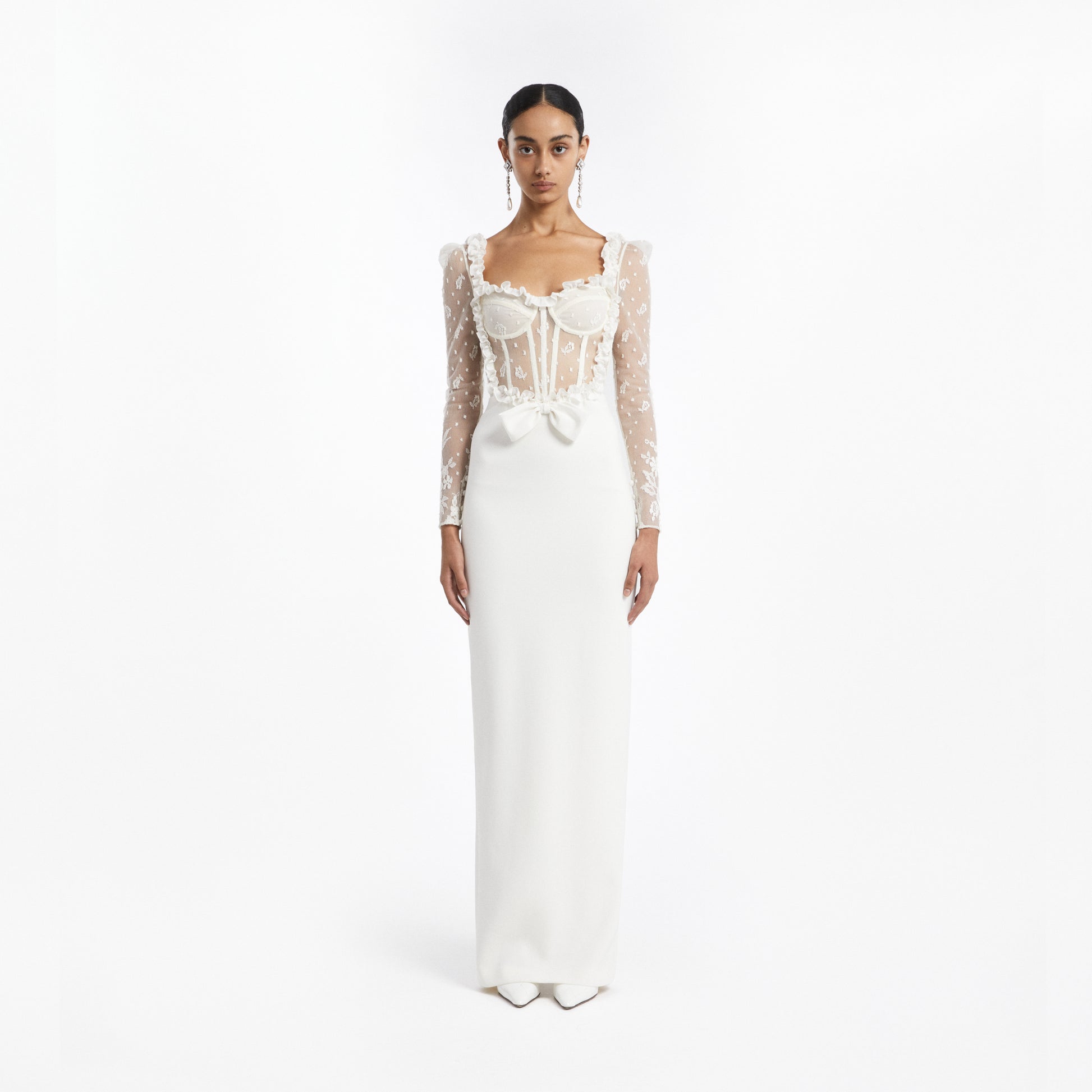 Cady evening dress with lace bustier