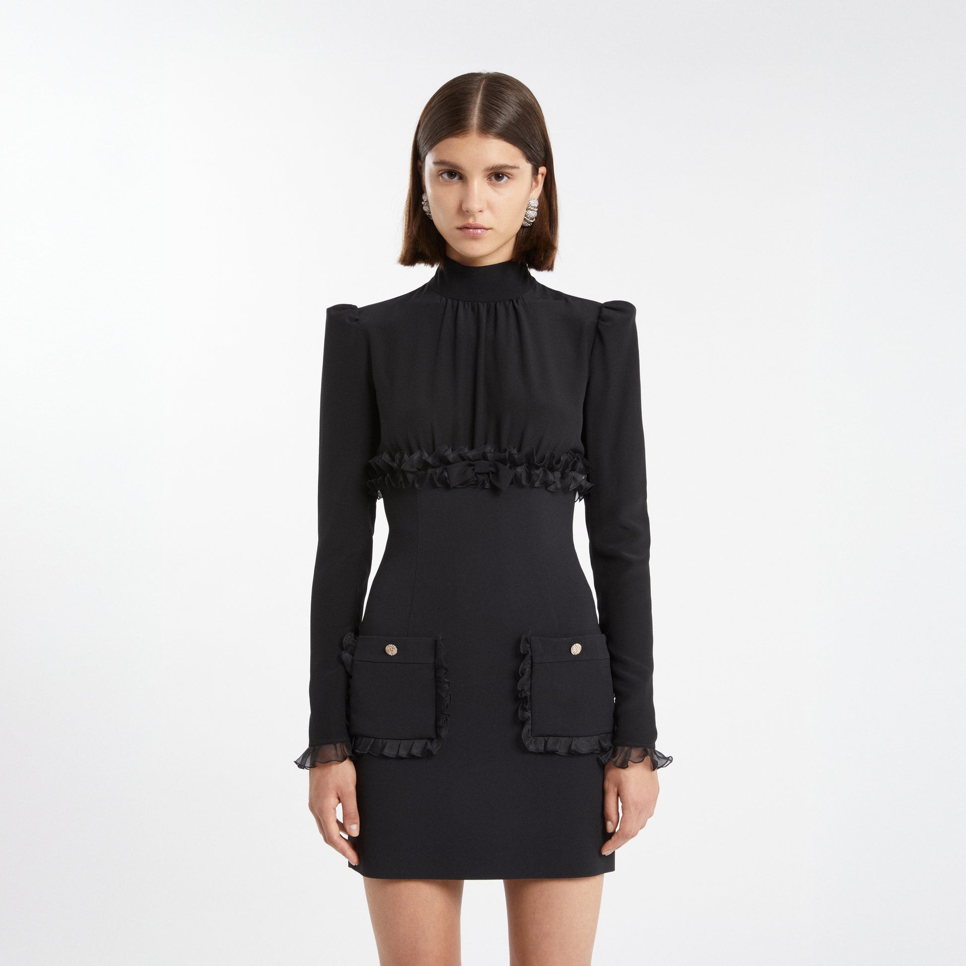 Cady mini dress with silk organza ruffles