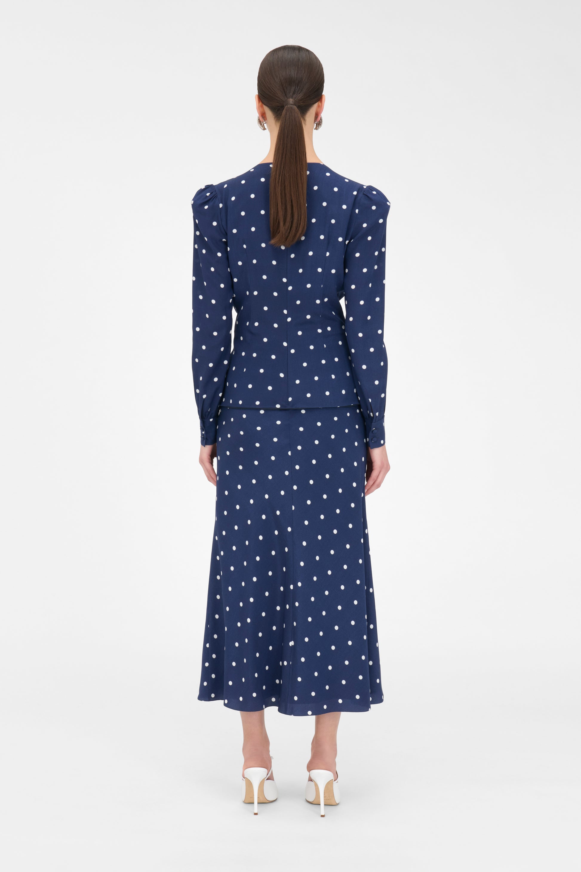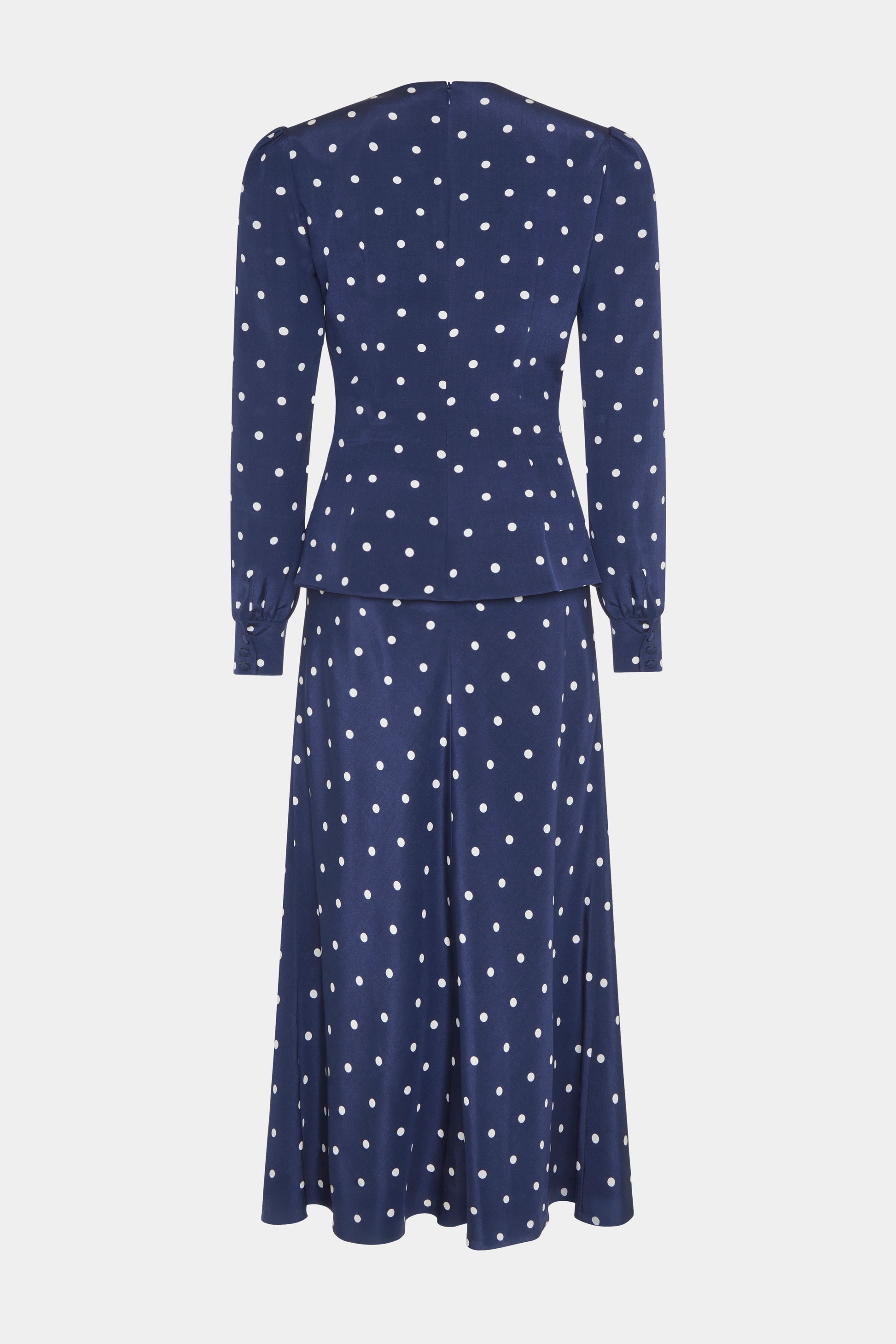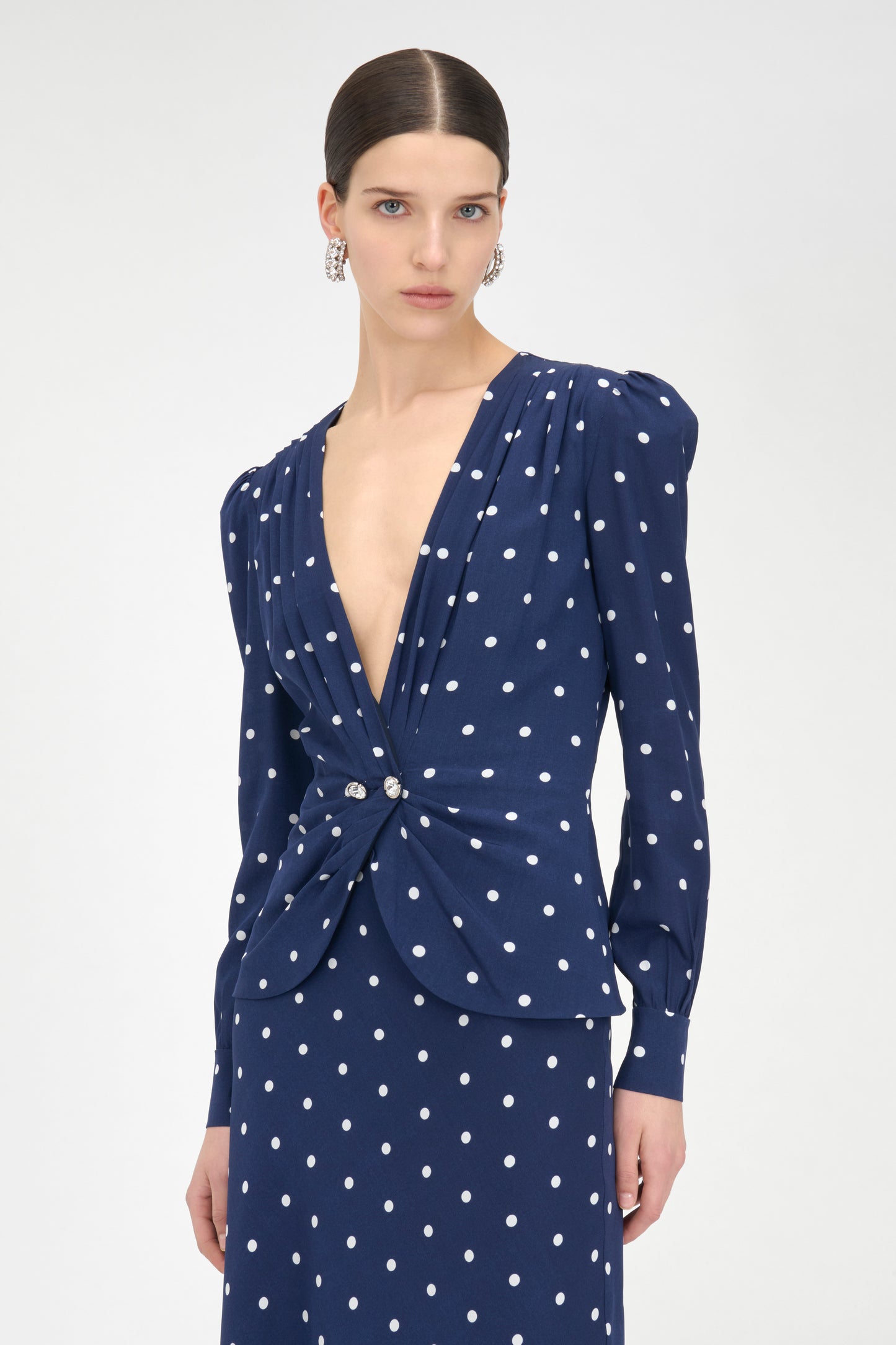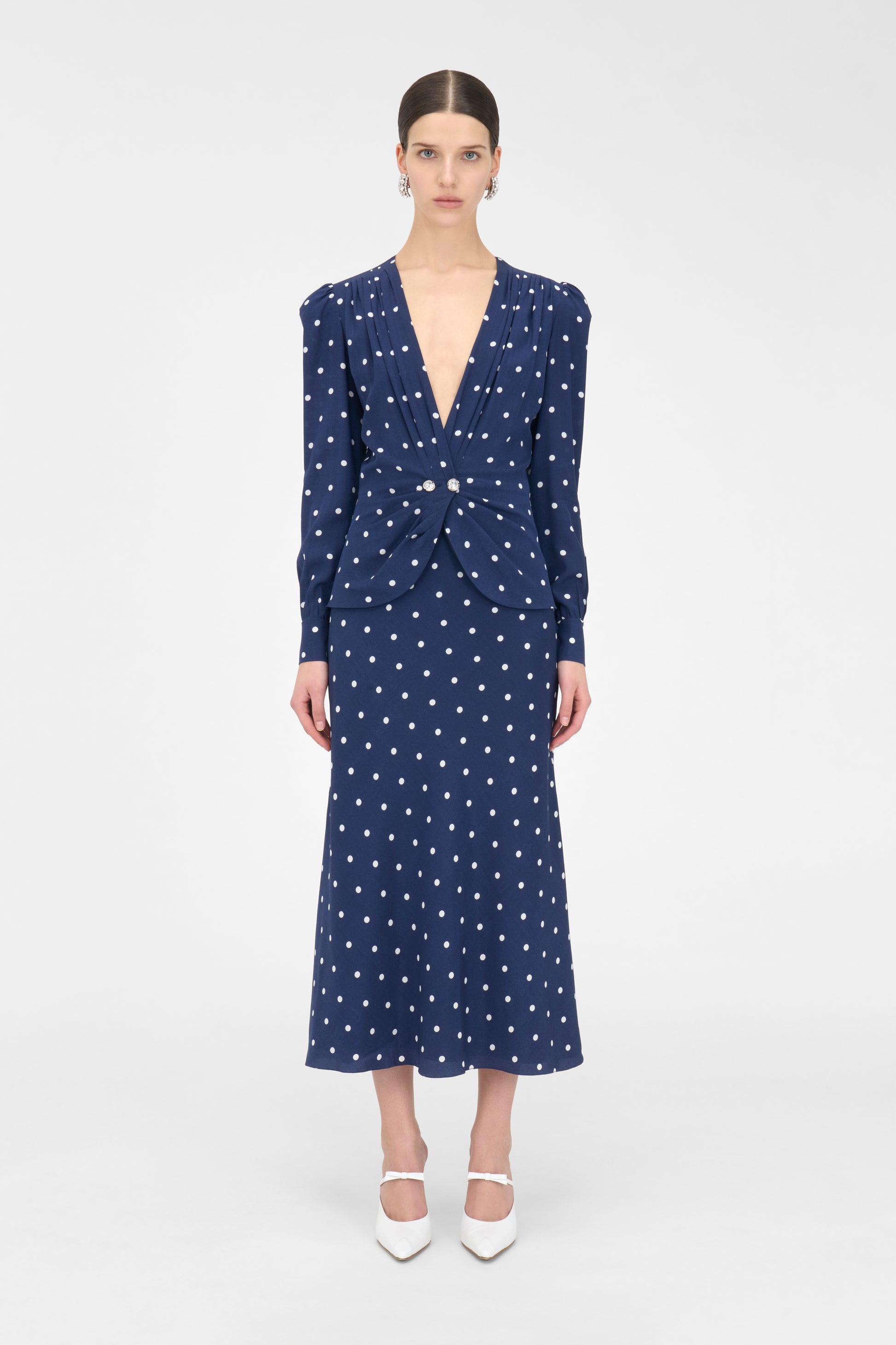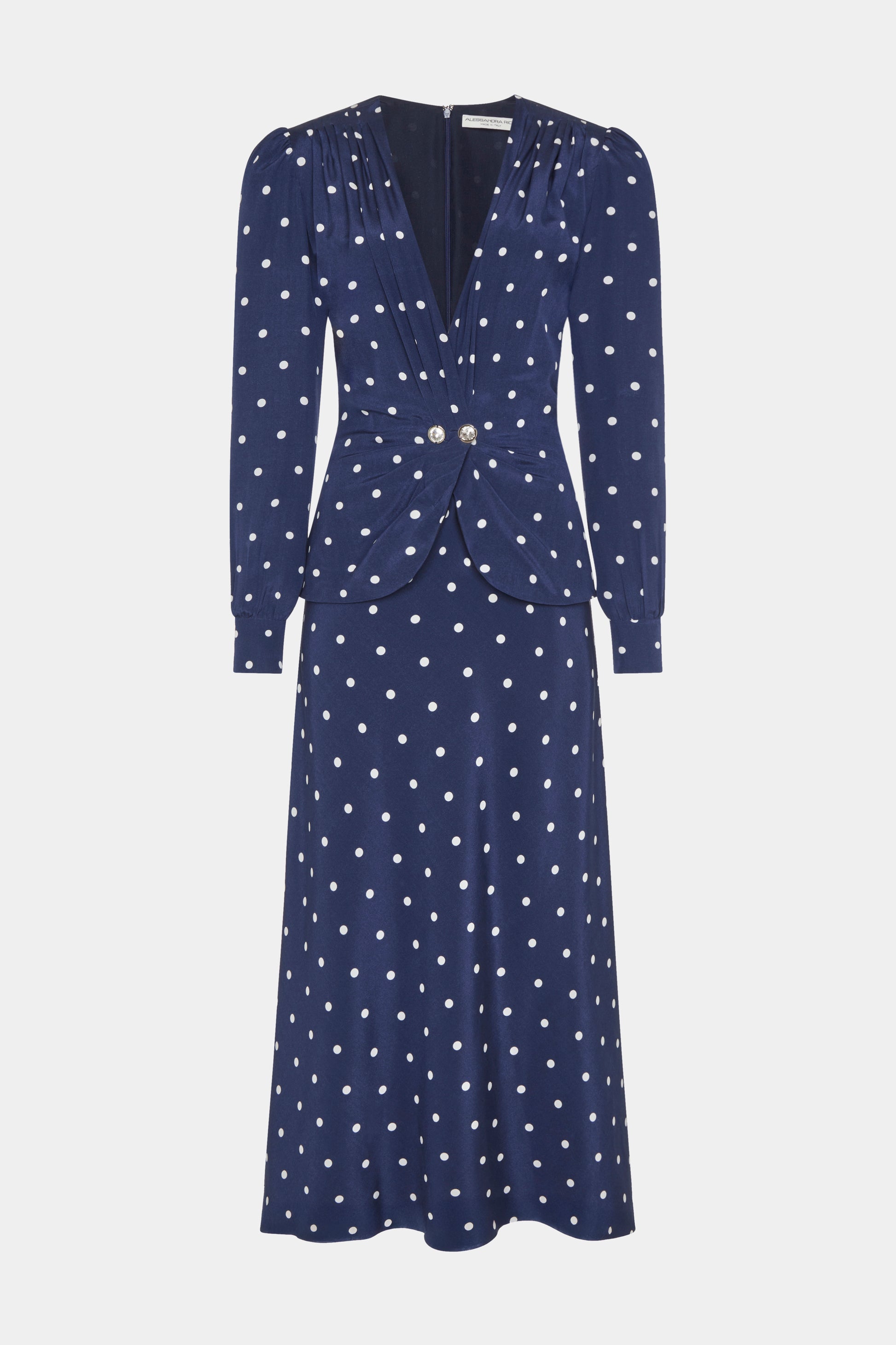 Polka dot silk dress with jewel buttons