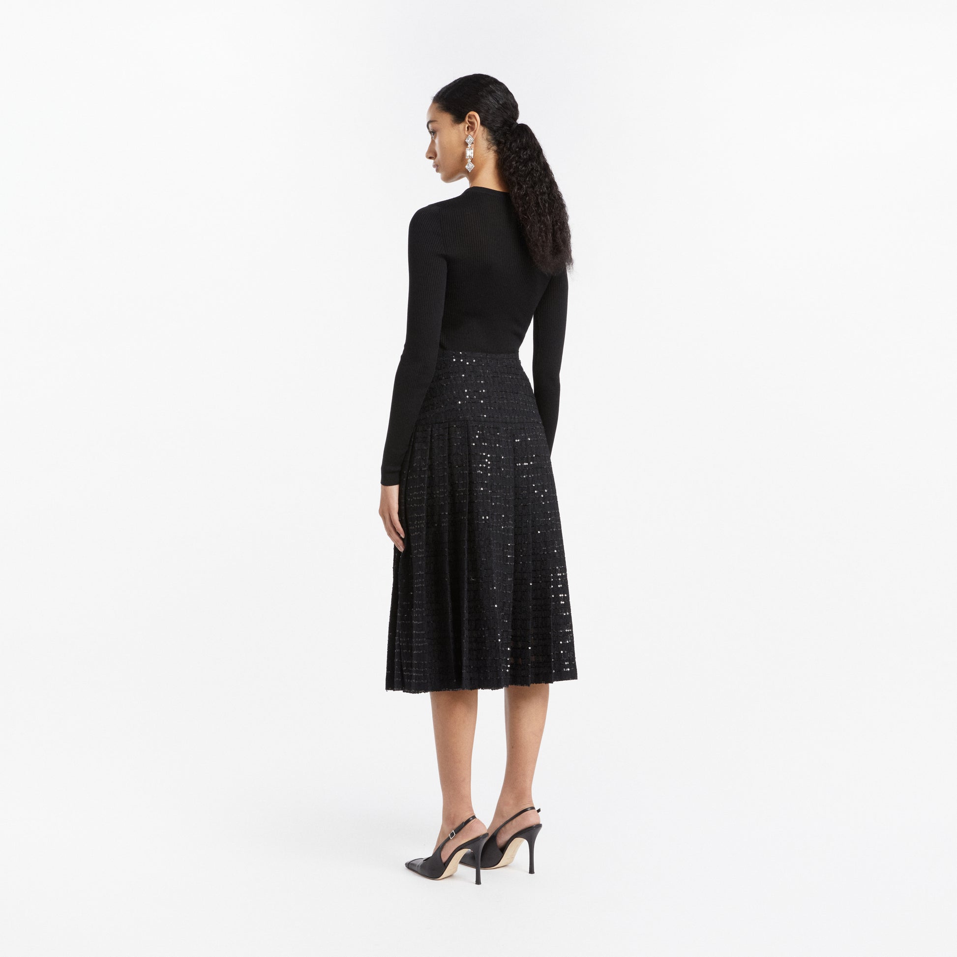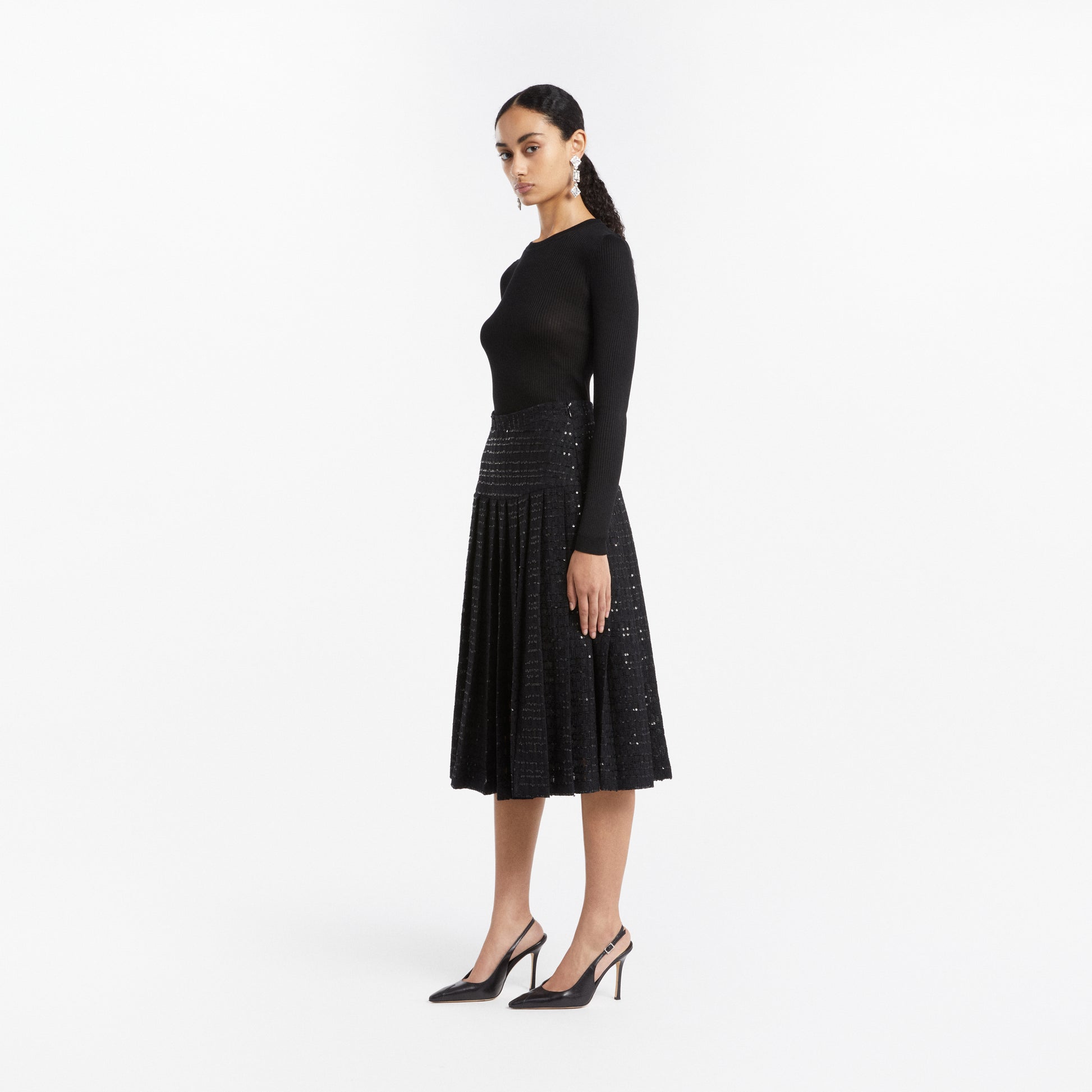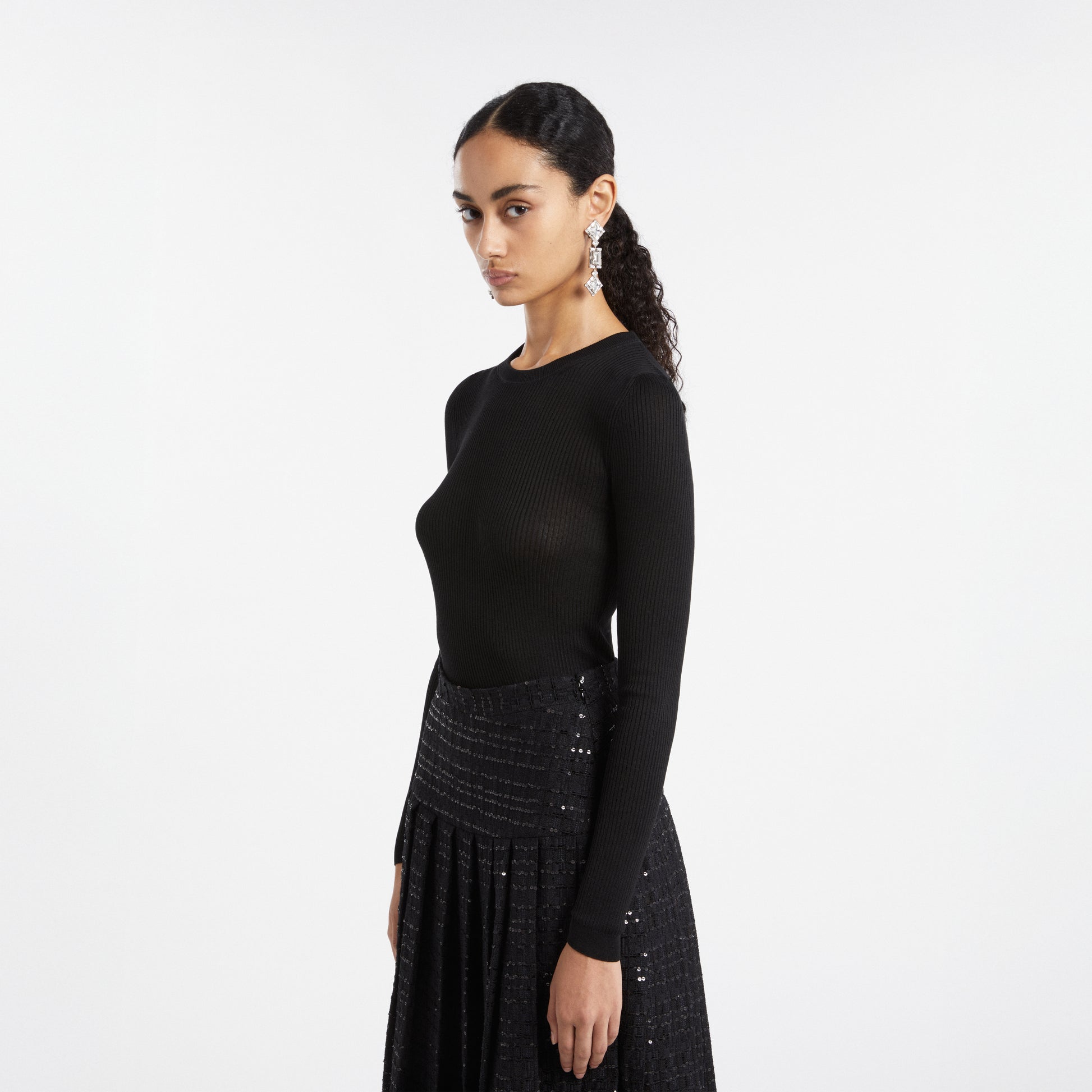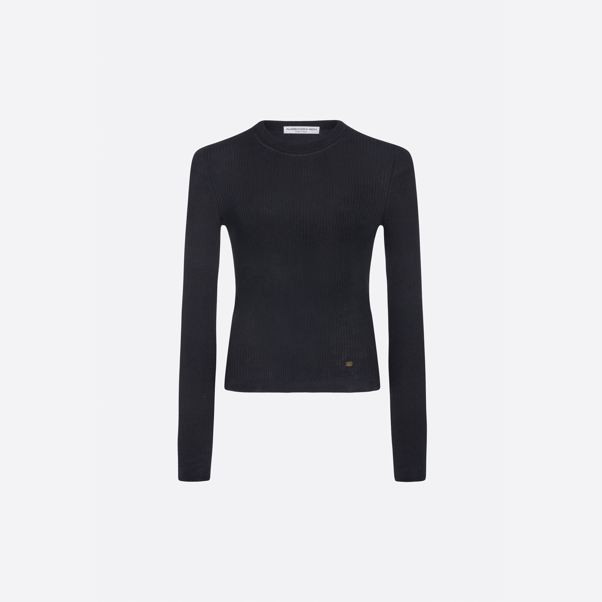 Silk ribbed knit long sleeve top with AR pendant