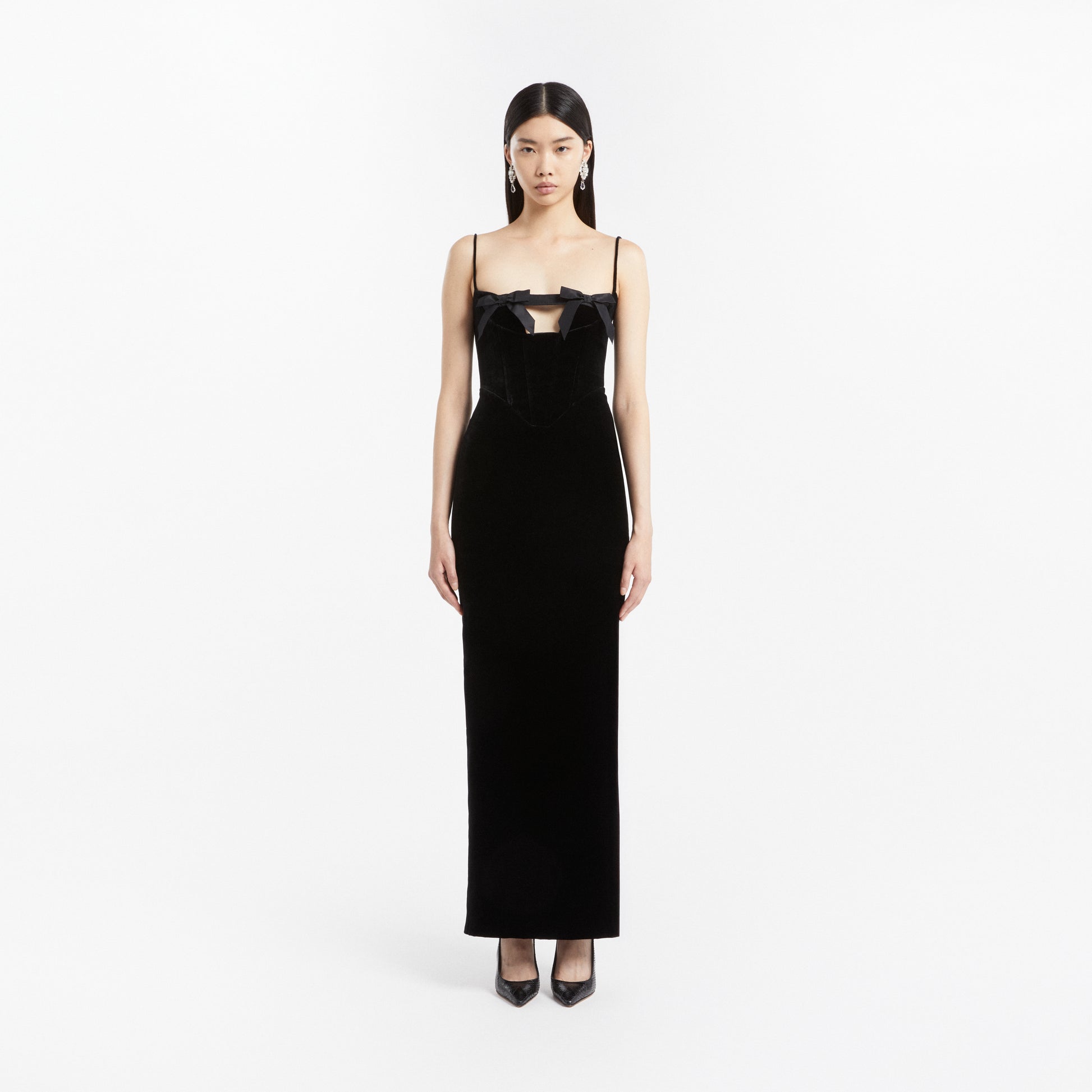 Velvet evening dress with bows